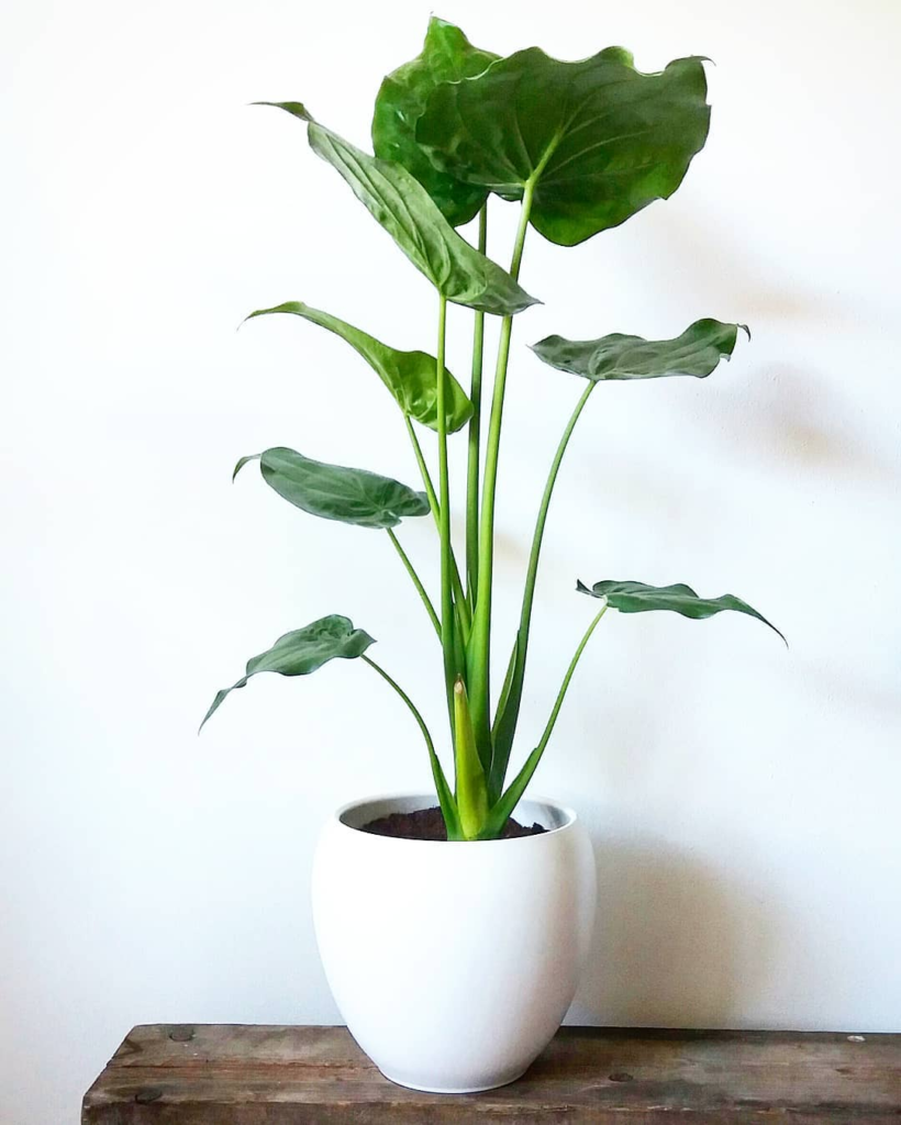 The plant’s glossy heart-shaped leaves grow on upright stems, creating a graceful and elegant appearance. Because of its striking look, many interior decorators and plant enthusiasts include it in indoor plant collections.