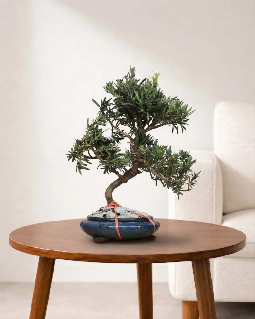 The bonsai adds a sense of calm and elegance to indoor spaces. Many people practicing Podocarpus Bonsai care use it as a decorative element in homes and offices.